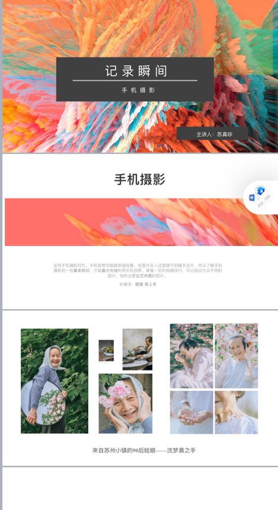 苏真珍从手机摄影的普及性引入,着重介绍了手机摄影的构图技巧,并从参考线、对焦曝光、突出主体三个摄影方面进行详细讲解。她希望同学们在今后生活中要多进行拍照练习,不断提高手机摄影能力。