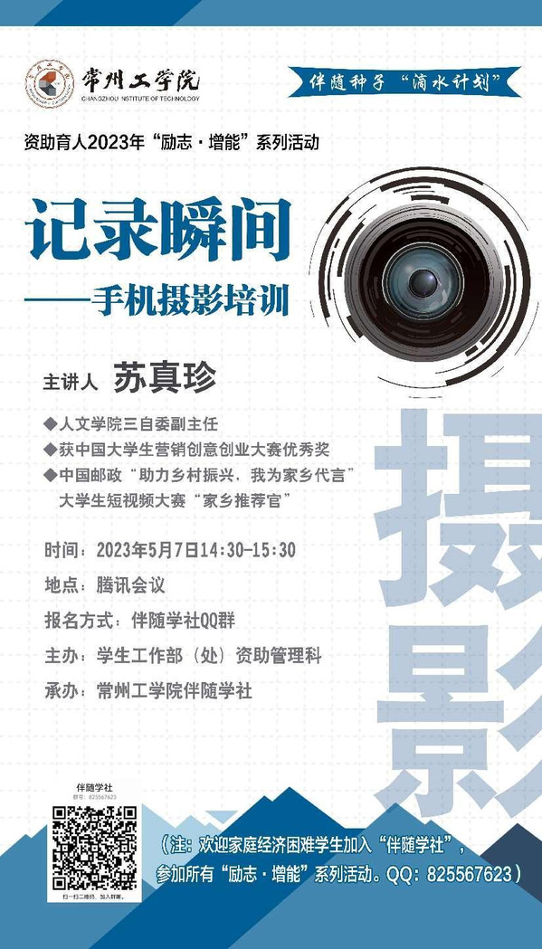 5月7日下午,伴随学社举办“记录瞬间——手机摄影培训”主题讲座。讲座采用腾讯会议形式,向同学们讲授手机摄影相关知识。本次讲座由伴随学社宣传部部长苏真珍主讲。