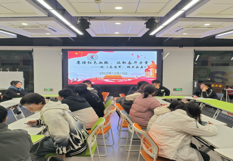 为加强校园红色文化氛围创设,弘扬红色精神,对同学们进行红色文化熏陶,伴随学社、三自委员会、心理协会、大学生公寓管理委员会四个学生组织于2023年12月15日下午在创新创业学院路演大厅举办“庚续红色血脉,汲取奋进力量”观影活动。