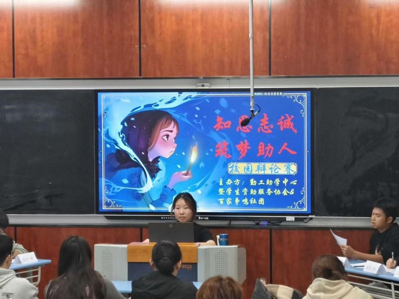为了打破社团间的壁垒,促进不同背景、不同专业的同学们相互了解、相互学习,10月29日,由校勤工助学中心暨学生资助服务协会与百家争鸣社团携手主办的“知恩志诚,筑梦助人”辩论比赛圆满落幕。此次活动由李昀芹、黄崧铭同学主要策划,面向常州工学院全体学生招募辩手、工作人员及观众。为期三天的辩论赛程于瑶光楼顺利进行。