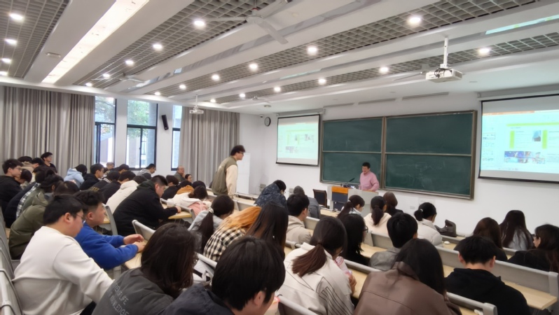 讲座中,盐根教授结合企业技术实践,系统解析不饱和聚酯树脂的合成机理、工艺优化及在新能源、环保等领域的创新应用,并分享技术转化经验。他鼓励学生“以产业需求锚定学习方向”,现场解答技术趋势与职业发展问题。在场学生表示,讲座为理论与实践结合提供了新视角。