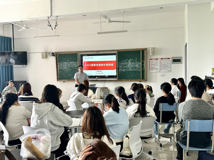 为明确宿舍长分工职责,提高工作效率,进一步营造安全、整洁、和谐的寝室氛围,10月15日,师范学院组织开展2025级新生宿舍长培训会,本次培训由辅导员张南洋主讲。