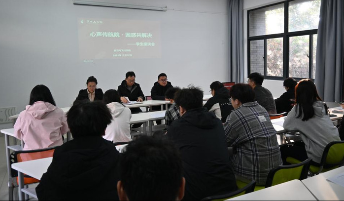 为搭建学院与学生的沟通桥梁,切实解决学生学习生活中的困惑,11月12日,航空与飞行学院以“心声传航院·困惑共解决”为主题,召开学生座谈会。院党委副书记张翔宇、学工办主任季銮顺、辅导员王文莉及各班学生代表齐聚一堂,共话成长。