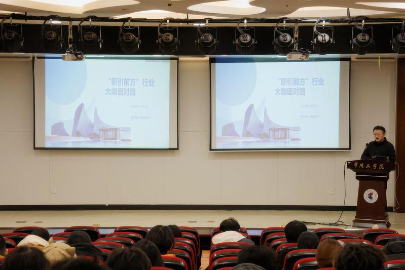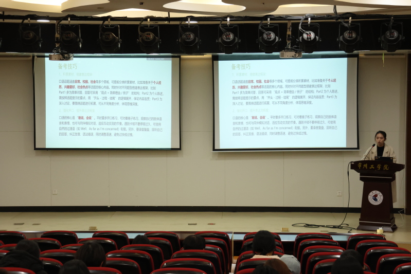 作为校第五届大学生职业生涯教育主题月活动之一,2025年11月25日下午,“‘职引前方’行业大咖面对面”专题讲座在图书馆一楼报告厅开讲,常州市环球雅思培训中心沈颖、Miley老师受邀主讲,为来自全校近180余名学生分享海外留学与雅思备考干货。