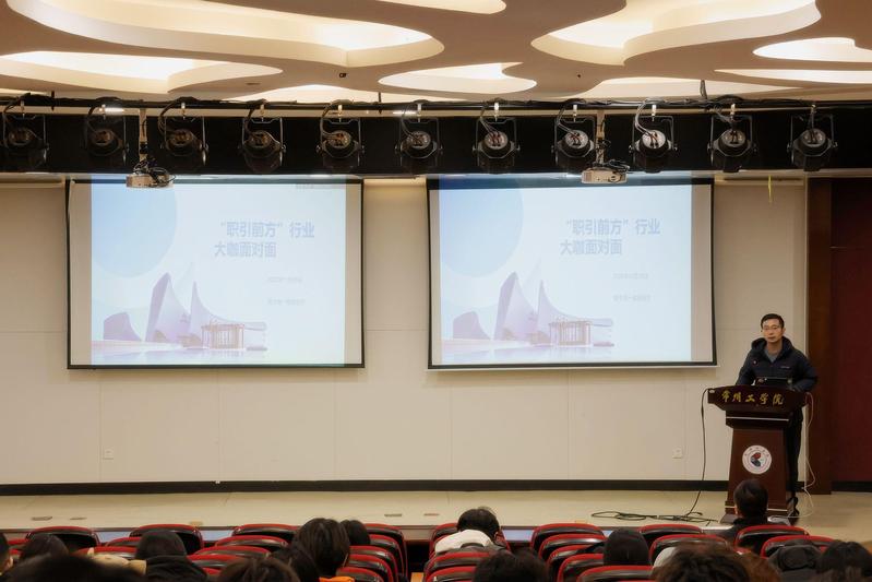 活动伊始,学院党委书记金政结合自身就业经历,从职业选择初心、就业市场变化等方面分享,强调大学生需尽早确立职业目标,结合专业与兴趣做好规划,在留学与就业的抉择中找准定位。