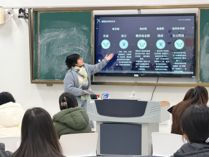 活动伊始,主持人带领同学们穿越时空,回溯雕版拓印从石刻碑拓到木版印刷的千年发展历程。同学们深刻理解了这项技艺在文化传承与知识传播中的历史价值,为后续的动手实践奠定了坚实的文化基础。