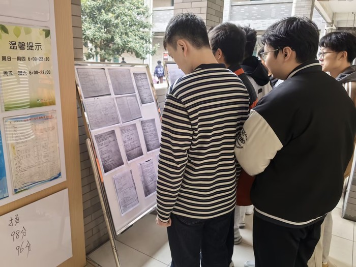 同学们纷纷驻足观展,或俯身细阅笔记内容,或与同伴轻声交流心得,更有同学用手机拍下亮点,将优秀方法“收藏”起来。从大家专注的神情中,能清晰感受到展览带来的启发与触动。不少同学表示,这些笔记让他们看到了自身差距,也学到了实用的笔记整理与知识梳理技巧。