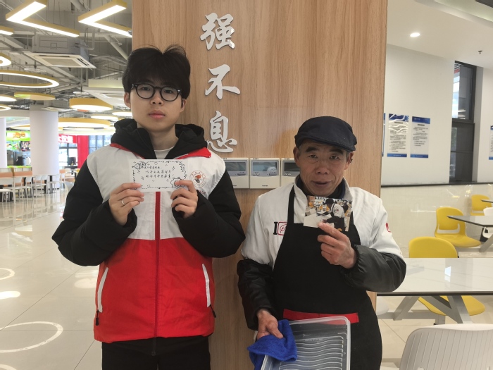 一张张照片,定格的是无私奉献的身影;一份份感动,传递的是雷锋精神的力量。大使们用心记录下每一个忙碌而动人的瞬间,将打印好的照片搭配手写感谢信,一一送到宿管阿姨、食堂工作人员手中。接过照片的那一刻,叔叔阿姨们脸上绽放出朴实而灿烂的笑容,指尖轻抚照片上自己的身影,眼中满是欣慰与感动。