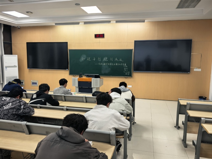 活动过程中,现场工作人员细致组织,保障竞赛有序推进,各班班助站在讲台旁,负责统筹流程、宣读规则。同学们全程专注投入,在知识竞赛的氛围中,深入学习学生手册中的规章制度、考勤要求、假期管理等核心内容,进一步明晰校园行为准则与纪律要求。